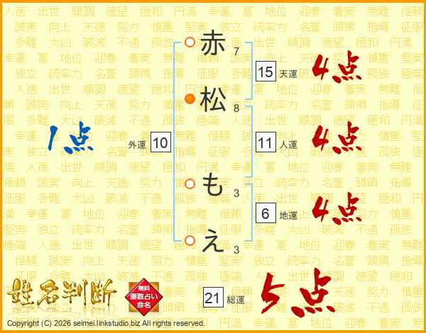 赤松もえさんの総運は21画の5点!