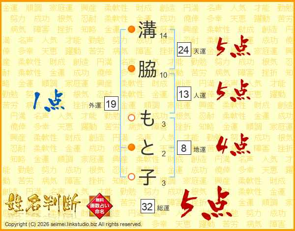 溝脇もと子さんの総運は32画の5点!