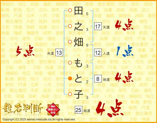 田之畑もと子さんの総運は25画の4点!