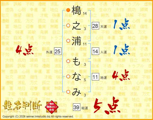 槝之浦もなみさんの総運は39画の5点!