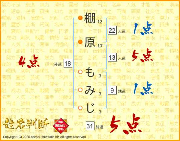 棚(12画)原(10画) も(3画)み(3画)じ(3画)