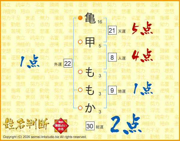 亀甲ももかさんの天運は21画の5点!