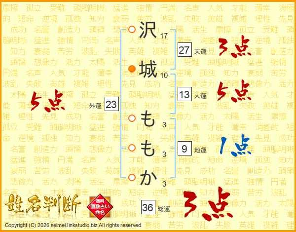 沢(17画)城(10画) も(3画)も(3画)か(3画)