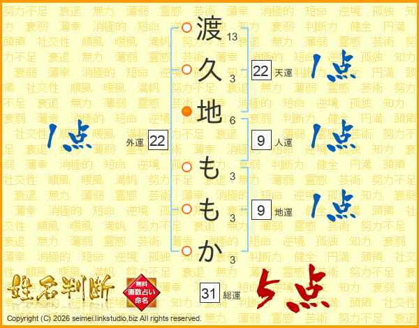 渡久地ももかさんの総運は31画の5点!
