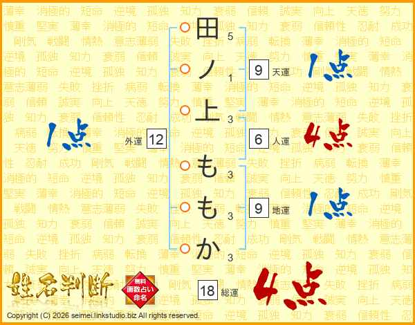 田ノ上ももかさんの総運は18画の4点!