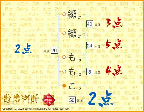 纐(21画)纈(21画) も(3画)も(3画)こ(2画)