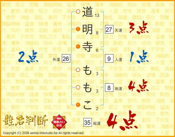 道明寺ももこさんの総運は35画の4点!