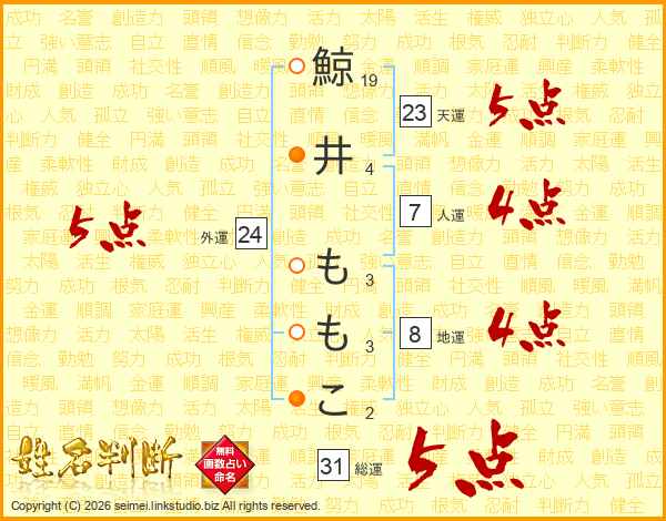 鯨井ももこさんの総運は31画の5点!
