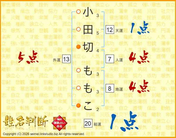 小田切ももこさんの外運は13画の5点!