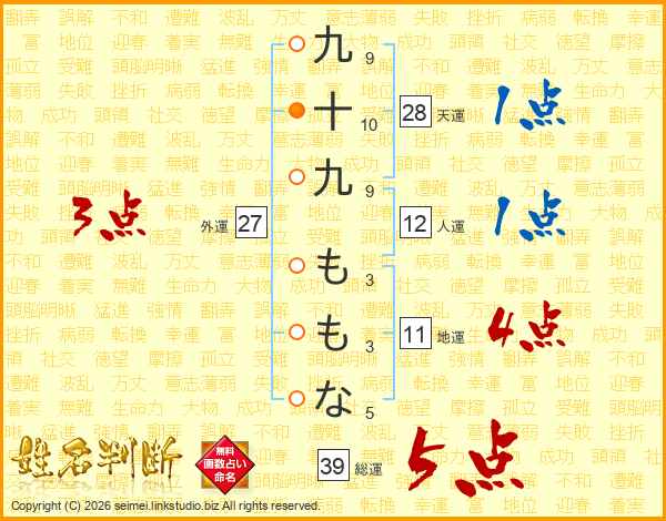 九(9画)十(10画)九(9画) も(3画)も(3画)な(5画)