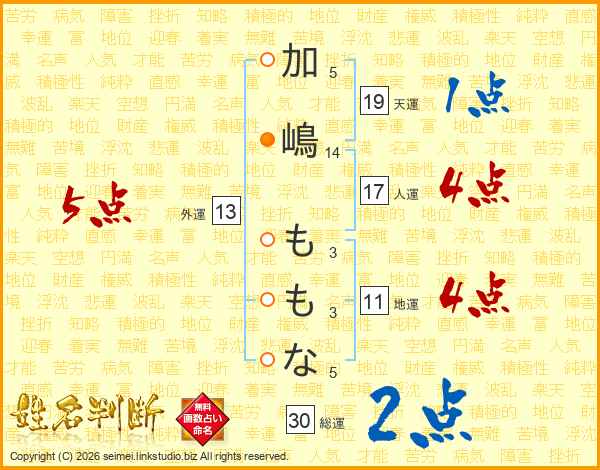 加嶋ももなさんの総運は30画の2点!