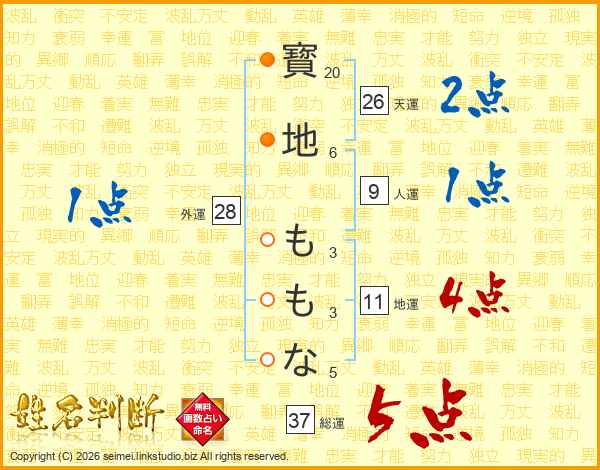 寳地ももなさんの総運は37画の5点!