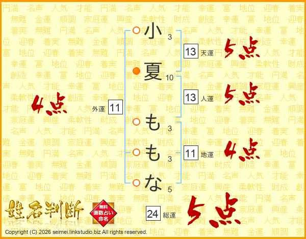 小夏ももなさんの総運は24画の5点!