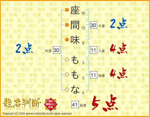 座間味ももなさんの総運は41画の5点!