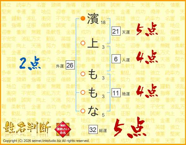 濱上ももなさんの総運は32画の5点!