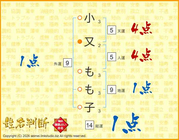 小(3画)又(2画) も(3画)も(3画)子(3画)