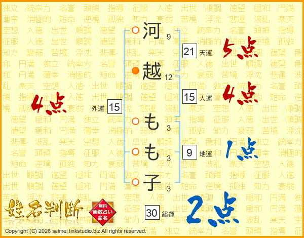 河越もも子さんの総運は30画の2点!