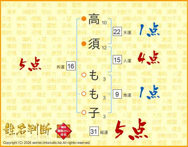 高須もも子さんの総運は31画の5点!