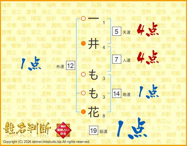 一(1画)井(4画) も(3画)も(3画)花(8画)