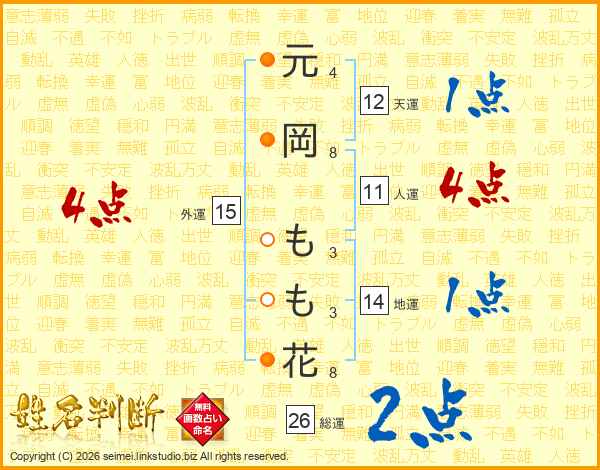元岡もも花さんの総運は26画の2点!