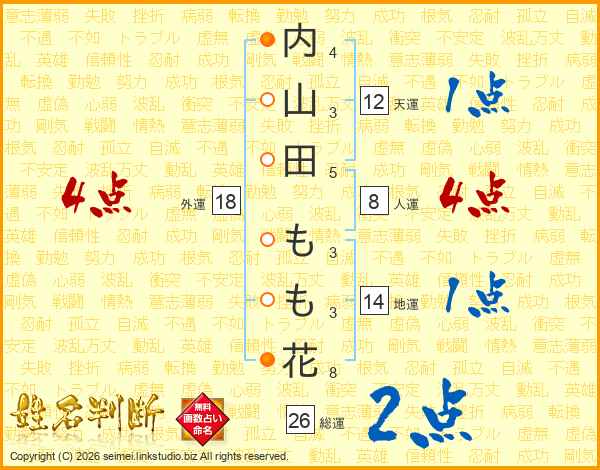 内山田もも花さんの総運は26画の2点!