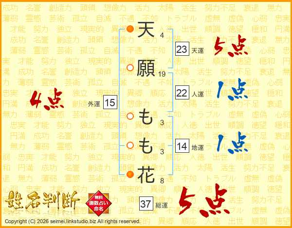 天願もも花さんの総運は37画の5点!