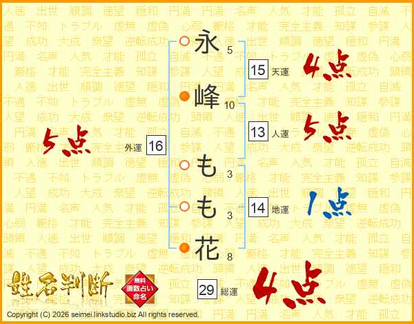 永峰もも花さんの総運は29画の4点!