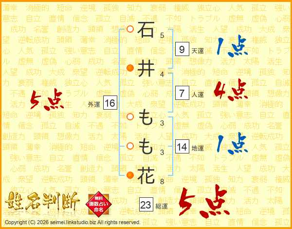 石井もも花さんの総運は23画の5点!