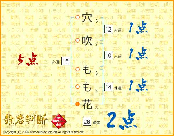 穴(5画)吹(7画) も(3画)も(3画)花(8画)