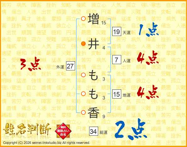 増(15画)井(4画) も(3画)も(3画)香(9画)