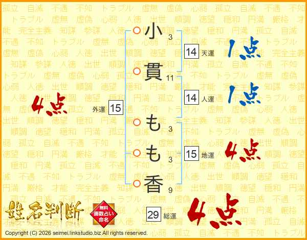 小貫もも香さんの総運は29画の4点!