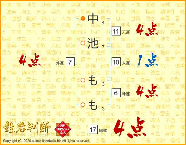 中池ももさんの天運は11画の4点!