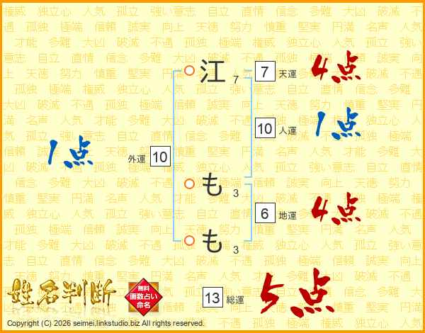 江ももさんの総運は13画の5点!