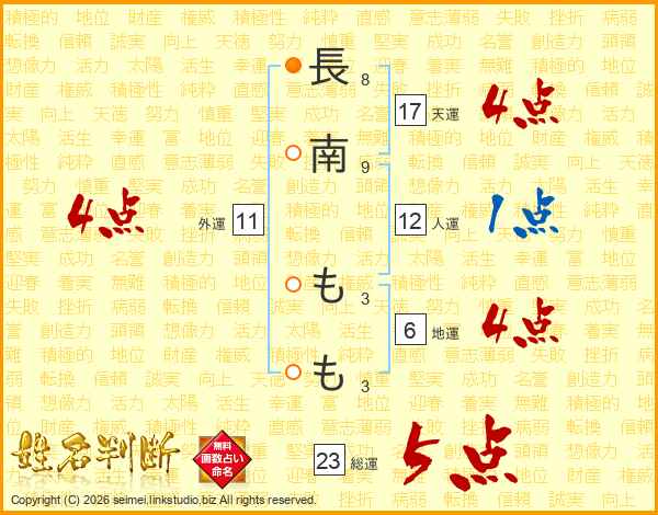 長(8画)南(9画) も(3画)も(3画)