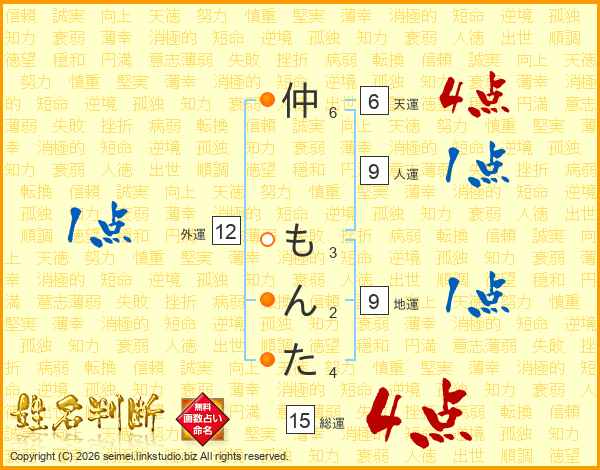 仲もんたさんの総運は15画の4点!