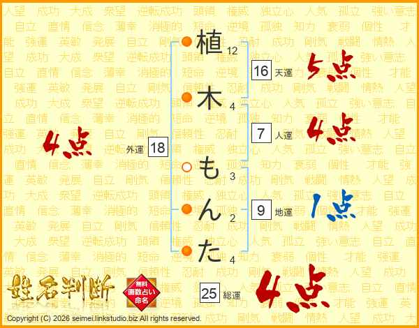 植木もんたさんの総運は25画の4点!