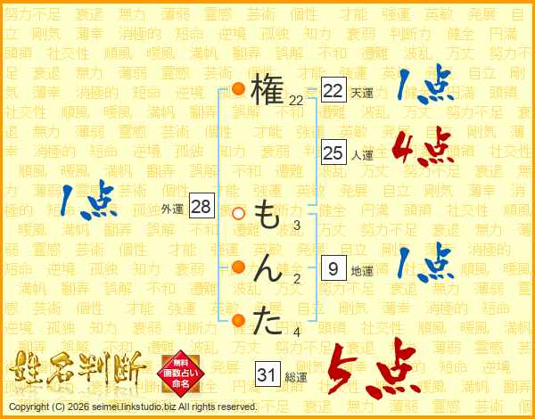 権もんたさんの総運は31画の5点!