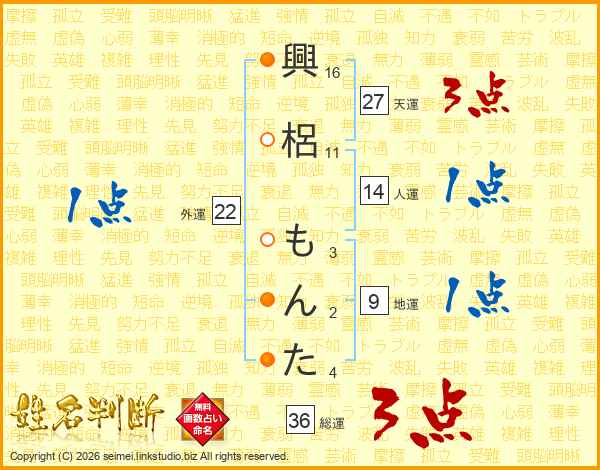 興梠もんたさんの天運は27画の3点!