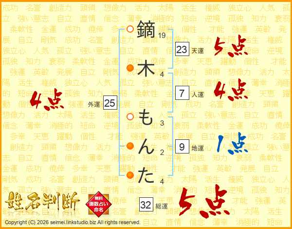 鏑木もんたさんの総運は32画の5点!