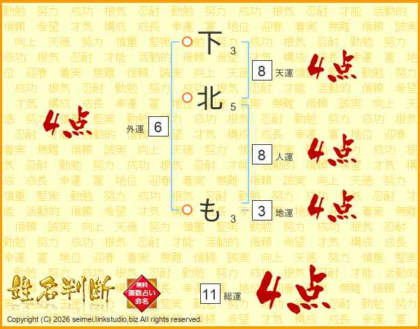 下北もさんの総運は11画の4点!