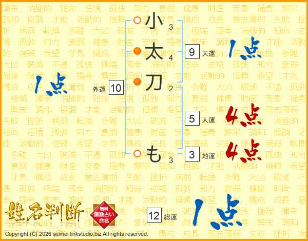 小太刀もさんの総運は12画の1点!