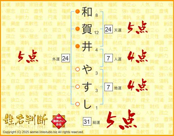 和賀井やすしさんの総運は31画の5点!