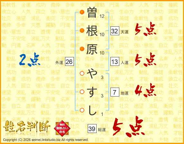 曽根原やすしさんの総運は39画の5点!