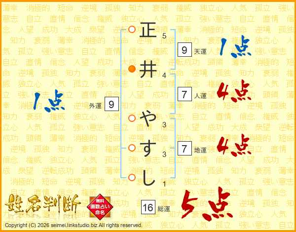 正(5画)井(4画) や(3画)す(3画)し(1画)