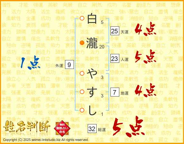 白(5画)瀧(20画) や(3画)す(3画)し(1画)