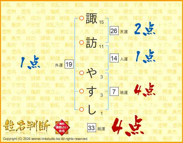 諏訪やすしさんの天運は26画の2点!
