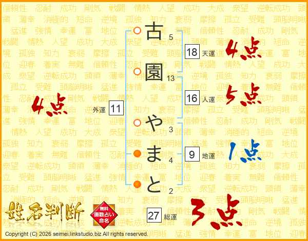 古園やまとさんの天運は18画の4点!