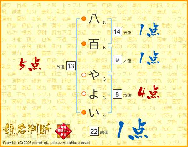 八百やよいさんの総運は22画の1点!