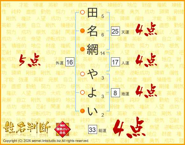田名網やよいさんの総運は33画の4点!