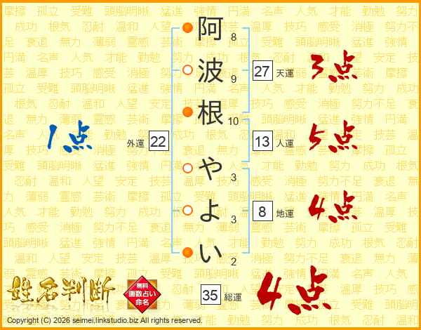 阿波根やよいさんの人運は13画の5点!